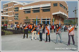 下午一点半,学院各系部、处室近80位老师和六个系共500余名学生在图书馆中心广场列队,举行了出征仪式。