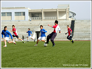 12月13日中午,学院教工足球队与刚刚获得学院首届男子足球赛冠军的工商管理系足球队在体育场进行了一场足球友谊赛。