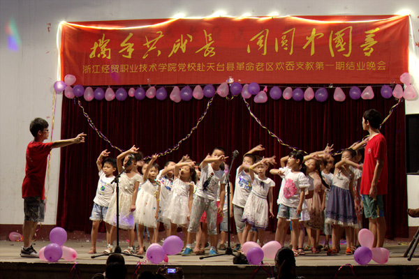 此次爱心支教,恰逢“八一”建军节。志愿者们在来支教前就精心编排了一场文艺演出,希望把爱送给革命老区的留守儿童,也当作是纪念“八一”和支教的开班仪式。