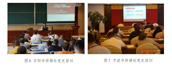 二是走进供销企业,重拾为农服务行动。陈军、郑晓丽、周晓晓老师走进浙江省兴合集团党员干部培训班,通过讲述供销社发展史,以供销党史教育人,以供销文化熏陶人,以涉农企业的为农服务的初心感化人,宣讲团的党史宣讲活动激发了企业员工内心朴素的为农情怀。将党员干部培训与为农服务队伍建设相统一,将企业公益性服务与全面脱贫攻坚挂钩,激发培训学员牢把发展风向标,引领乡村振兴新风尚,重塑为农服务赤子心,增强为农服务情怀和实际行动。