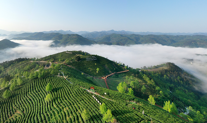 陕西省安康市平利县老县镇蒋家坪茶园(2022年4月5日摄,无人机照片)。新华社记者 陶明 摄