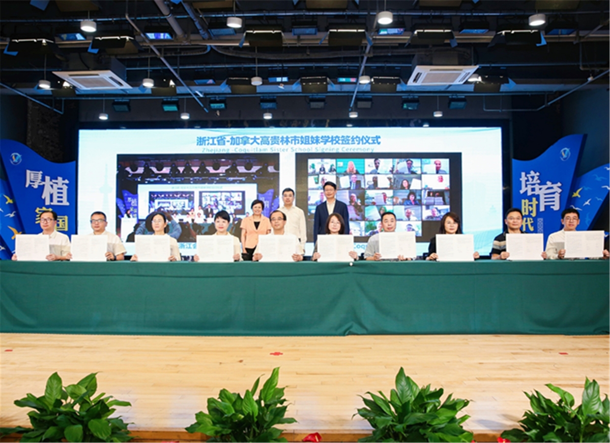 据了解,2022年9月,省教育厅与教育部中外语言交流合作中心、加拿大高贵林市教育局启动“中加中小学伙伴计划”项目,通过语言学习、文化交流和师生互访,共同加强在基础教育领域交流合作。“中加中小学伙伴计划”项目启动以来进展顺利,受到了浙江和高贵林两地中小学校的欢迎。姐妹学校签约后,将根据学校实际,开展冬夏令营、师生交流、学术研讨、文体活动、空中课堂等形式丰富的交流活动。