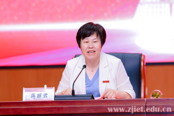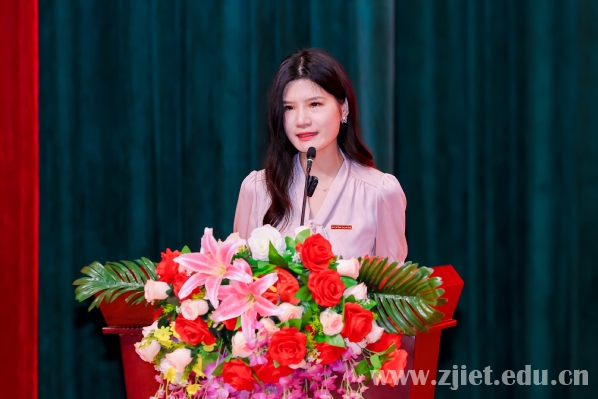 2024届毕业生代表、国家奖学金获得者蒋益姣发言。她回忆了宝贵的“经贸时光”,讲述了服务亚运会、参加技能竞赛等奋斗故事,表达了对学校和老师辛勤栽培的感恩之情。