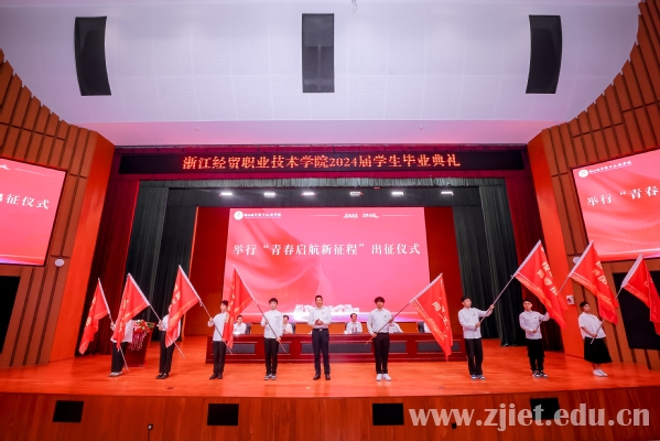 “我宣布:新时代、新征程,2024届经贸毕业生从学林街280号正式出征起航!”典礼最后,陈德泉发布出征令并为毕业生代表授出征旗。